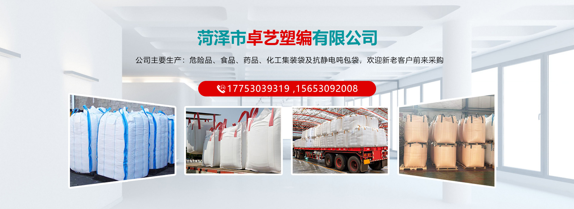 公司主營噸包袋、抗靜電噸包袋噸包軟托盤、塑料編織袋、集裝袋的研發與生產制造